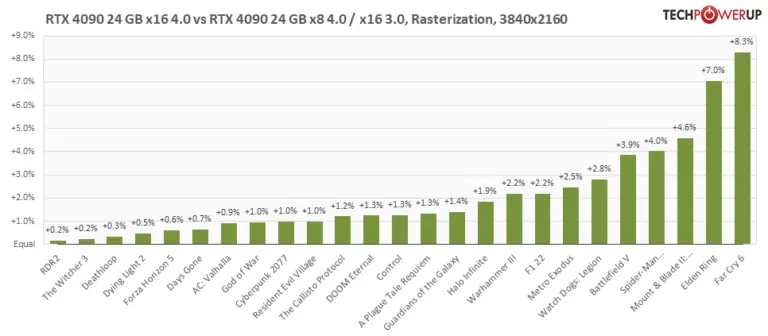 Pilihan game TPU telah diperbarui dengan judul yang lebih baru, seperti Elden Ring atau Far Cry 6. Gamer tersebut telah menunjukkan perbedaan yang paling terlihat antara mode x16/x8, naik hingga 8,3%: