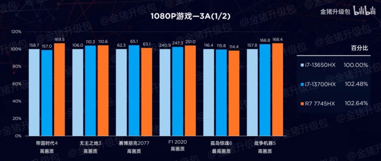 Tes pertama Ryzen 7 7745HX yang diterbitkan oleh Golden Pig Upgrade via Bilibili seperti yang ditunjukkan dibawah, meskipun memiliki Core yang lebih sedikit daripada SKU unggulan Intel, ini sama cepatnya dan bahkan memiliki beberapa keunggulan dalam hal efisiensi.