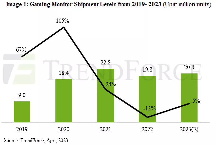 Laporan TrendForce terbaru mengonfirmasi bahwa pengiriman monitor gaming turun 19 persen pada 2022, dengan 19,8 juta unit terjual dibandingkan 22,8 juta unit pada 2021 – penurunan pertama pasar sejak 2016. Grup memperkirakan ada sedikit pemulihan tahun ini, kemungkinan mencapai 20,8 juta unit untuk benjolan lima persen.