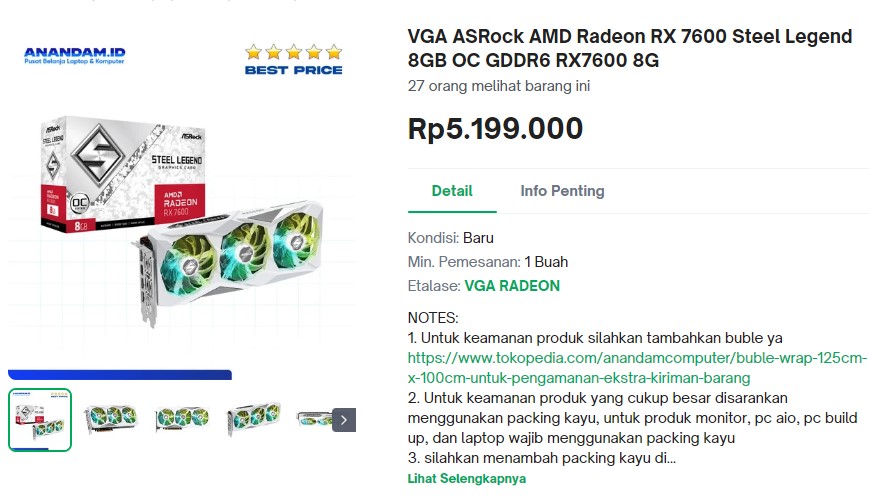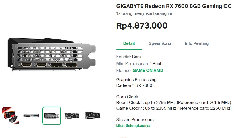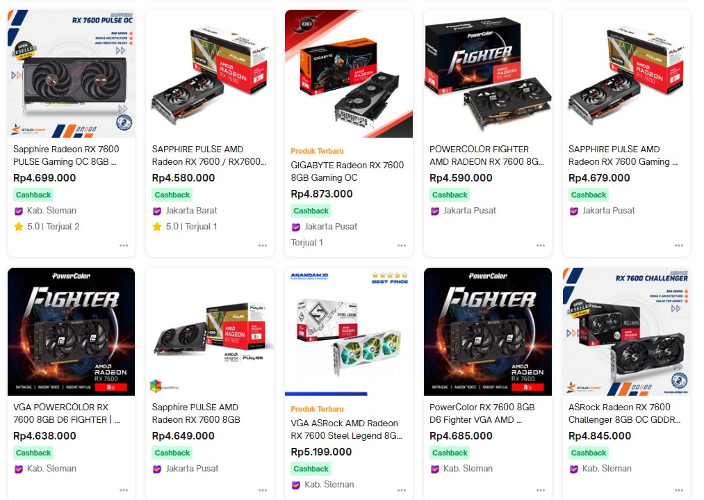 Nah, lebih dari dua minggu dirilis, kini pilihan GPU terbaru AMD ini sudah tersedia dipasaran. Harga berkisar antara 4.5 jutaan hingga 5 jutaan lebih. Pilihan termahal tentu jadi opsi premium dengan fitur maupun potensi cooling yang lebih baik.