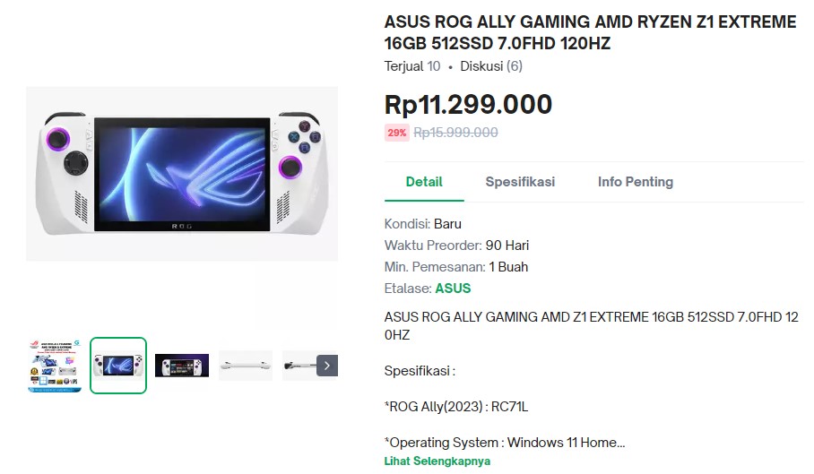 ASUS ROG ALLY Sudah Mulai Dijual Seharga Mulai Dari 10 Jutaan