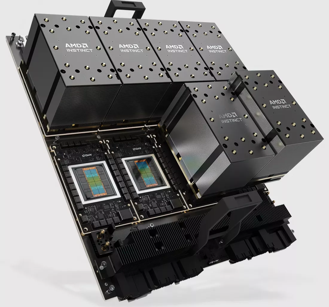 Untuk GPU, AMD memperkenalkan chip Instinct MI300X yang diklaim sebagai akselerator AI generatif khusus. Ini memanfaatkan desain chiplet dasar yang sama dengan Instinct MI300A yang diumumkan sebelumnya (yang sekarang menjadi sampel AMD), tetapi MI300X menggantikan 24 core CPU Zen 4 di MI300A dengan inti GPU CDNA3 tambahan dan Memori Bandwidth Tinggi (HBM).