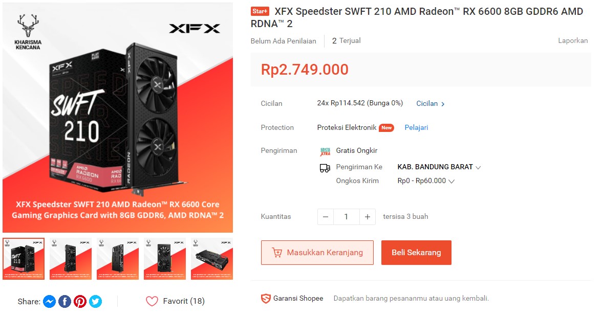 Radeon RX 6600 mungkin udah cukup lama dirilis, namun VGA ini masih sangat layak untuk gaming di resolusi 1080p max setting atau bahkan 1440p. Dulu pas awal dirilis tahun 2021, harga bisa mencapai 9 jutaan lebih. Namun sekarang, nilainya terjun bebas ke angka 3 jutaan atau ada juga yang menjual dibawah 3 jutaan.