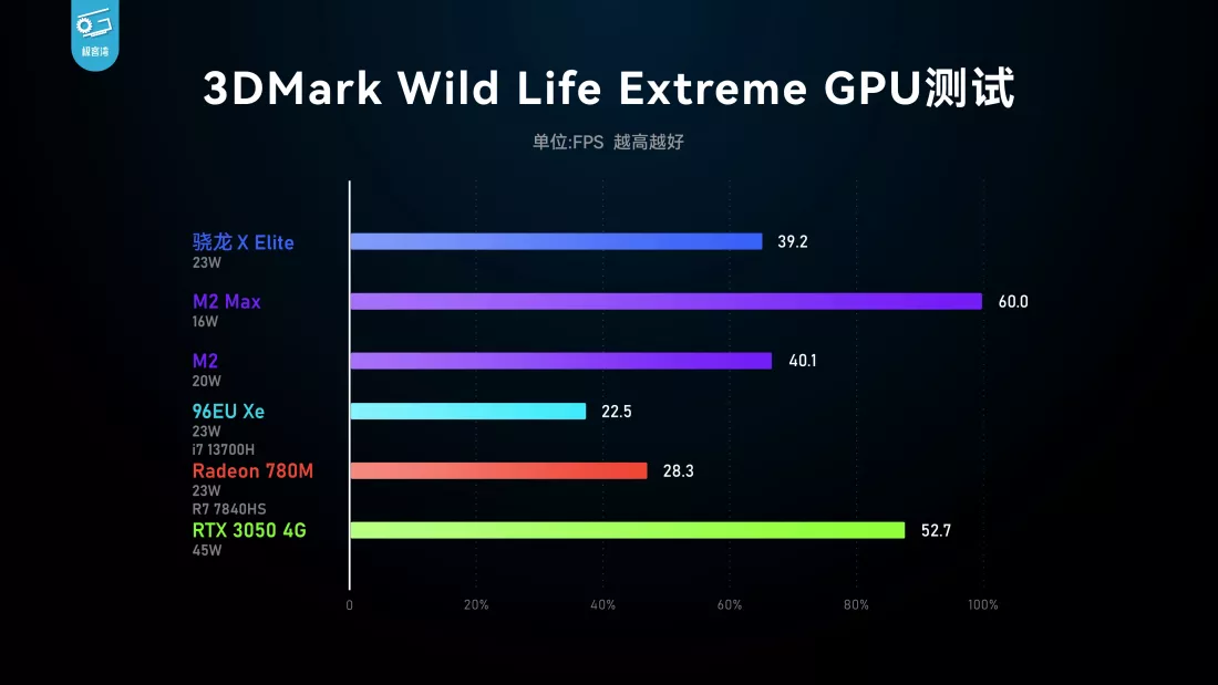 Dalam satu hasil yang menonjol, Snapdragon X Elite mengungguli AMD Radeon 780M, sebuah GPU terintegrasi RDNA 3, dalam benchmark 3DMark Wildlife Extreme, bahkan ketika dibatasi pada 23W. Ini juga hampir menyamai kinerja prosesor Apple M2.