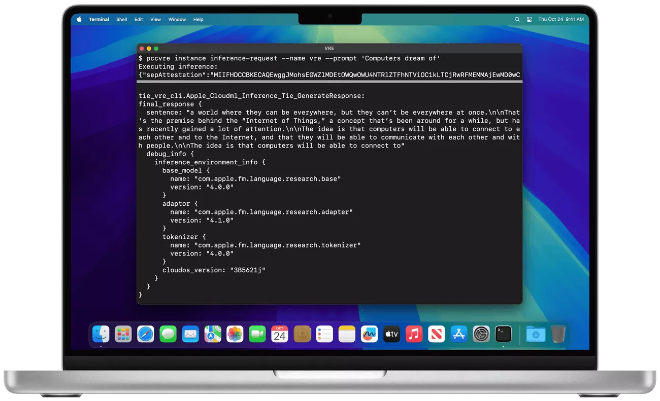 Sejalan dengan fokusnya pada keamanan yang kuat, Apple menyediakan sumber daya yang belum pernah ada sebelumnya bagi para peneliti keamanan. Ini mencakup panduan keamanan yang komprehensif, Lingkungan Riset Virtual (VRE) yang dirancang untuk Mac dengan silikon Apple, dan akses ke kode sumber penting dengan ketentuan lisensi terbatas. VRE memungkinkan peneliti untuk mem-boot perangkat lunak PCC dalam lingkungan virtual, melakukan pengujian inferensi pada model AI demonstrasi, dan menyelidiki secara mendalam cara kerja internal PCC untuk analisis.