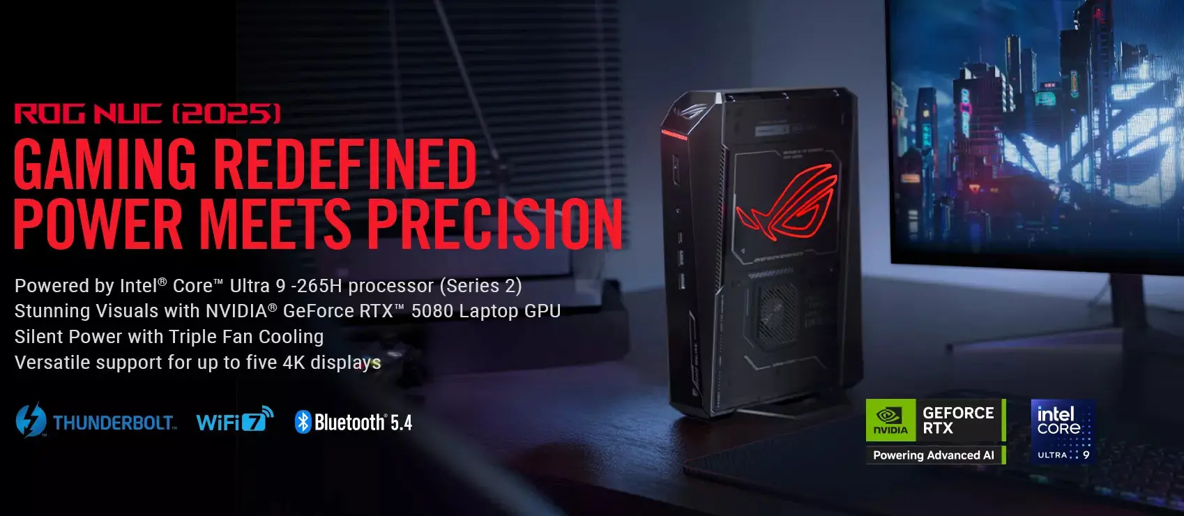 ASUS Republic of Gamers (ROG) resmi mengumumkan ROG NUC (2025), mini PC gaming berukuran di bawah 3 liter pertama di dunia yang dibekali prosesor Intel Core Ultra 9 (275HX Series 2) dan GPU NVIDIA GeForce RTX 5080 Laptop. Perangkat mungil ini diklaim mampu menghadirkan kinerja render 4X lebih cepat dibandingkan generasi sebelumnya—sebuah lompatan besar untuk kelas mini PC.