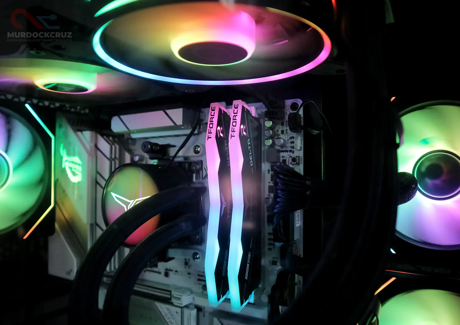 Mengusung desain yang terinspirasi dari pesawat siluman, T-FORCE DELTA RGB DDR5 memang tampil mencolok. Sudut tajam, pencahayaan RGB 120° yang terang, serta dukungan software sinkronisasi dari hampir semua vendor motherboard ternama—membuat RAM ini mudah masuk ke dalam sistem dengan tema visual apapun.