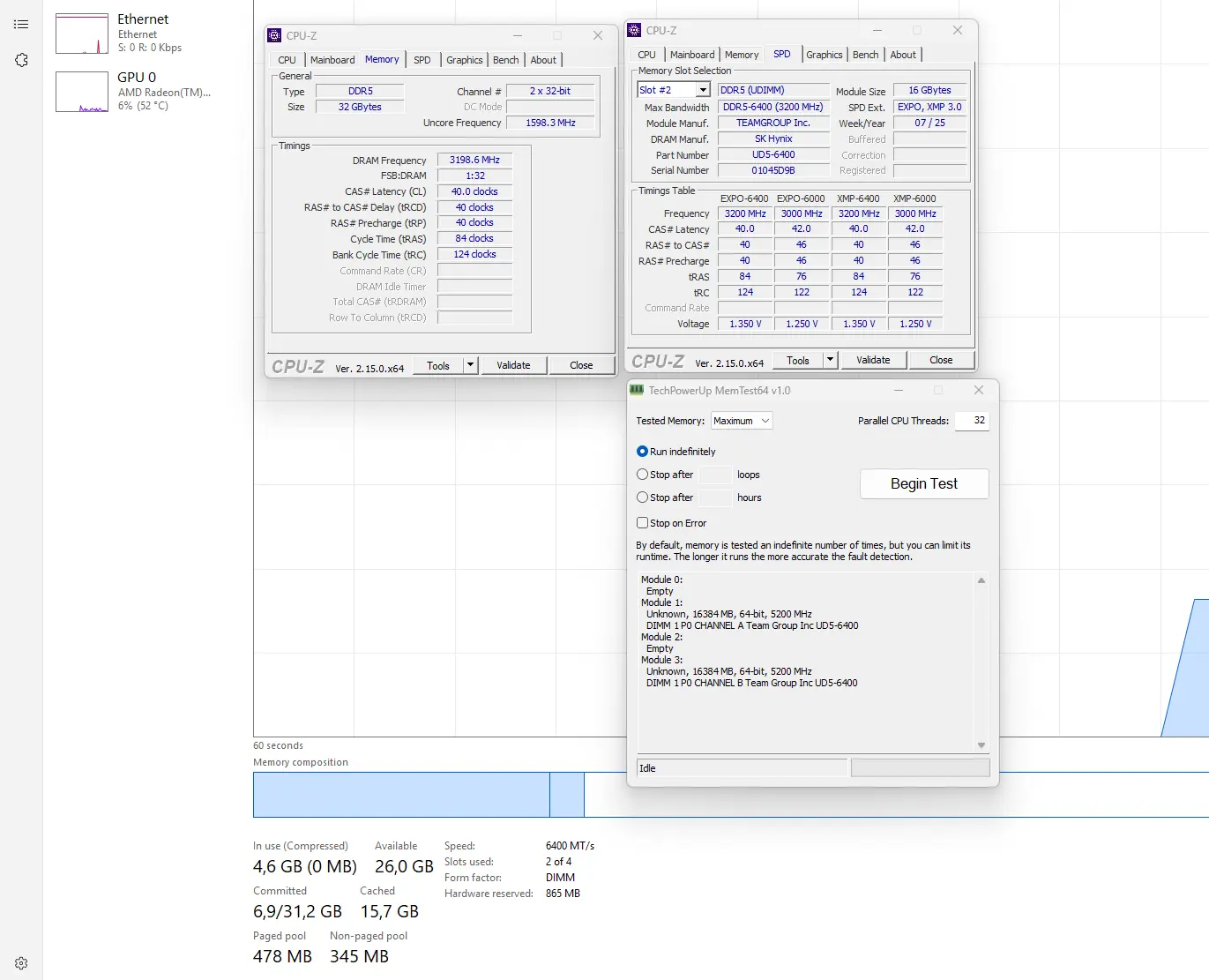 TEAMGROUP DELTA RGB DDR5 yang kami uji hadir dalam konfigurasi 2x16GB dengan kecepatan 6400 MHz. Ini bukan angka kecil, karena secara teoritis mampu menghasilkan bandwidth maksimal sebesar 51.200 MB/s—termasuk tinggi untuk segmen consumer mainstream.