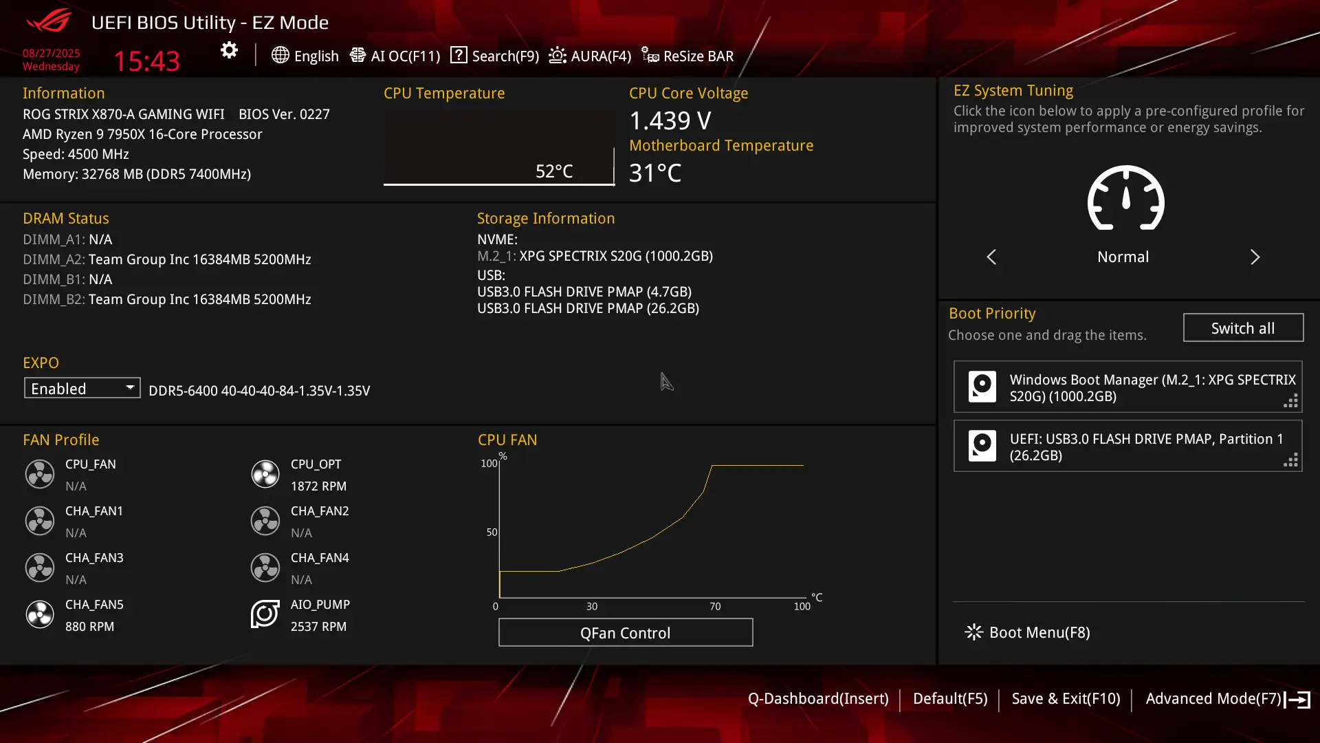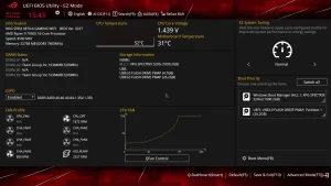 Salah satu keunggulan yang konsisten ditawarkan ASUS ada pada sisi BIOS dan perangkat lunak pendukung. Pada ROG Strix X870-A Gaming WiFi, BIOS tetap hadir dengan antarmuka yang user-friendly, sehingga mudah digunakan baik oleh pemula maupun pengguna berpengalaman. Terdapat mode EZ untuk pengaturan cepat, serta Advanced Mode bagi pengguna enthusiast yang ingin melakukan penyesuaian detail, mulai dari voltase, pengaturan RAM, hingga opsi overclocking. Respons menu terasa cepat dan navigasinya jelas, sehingga pengalaman pengaturan berjalan tanpa hambatan.
