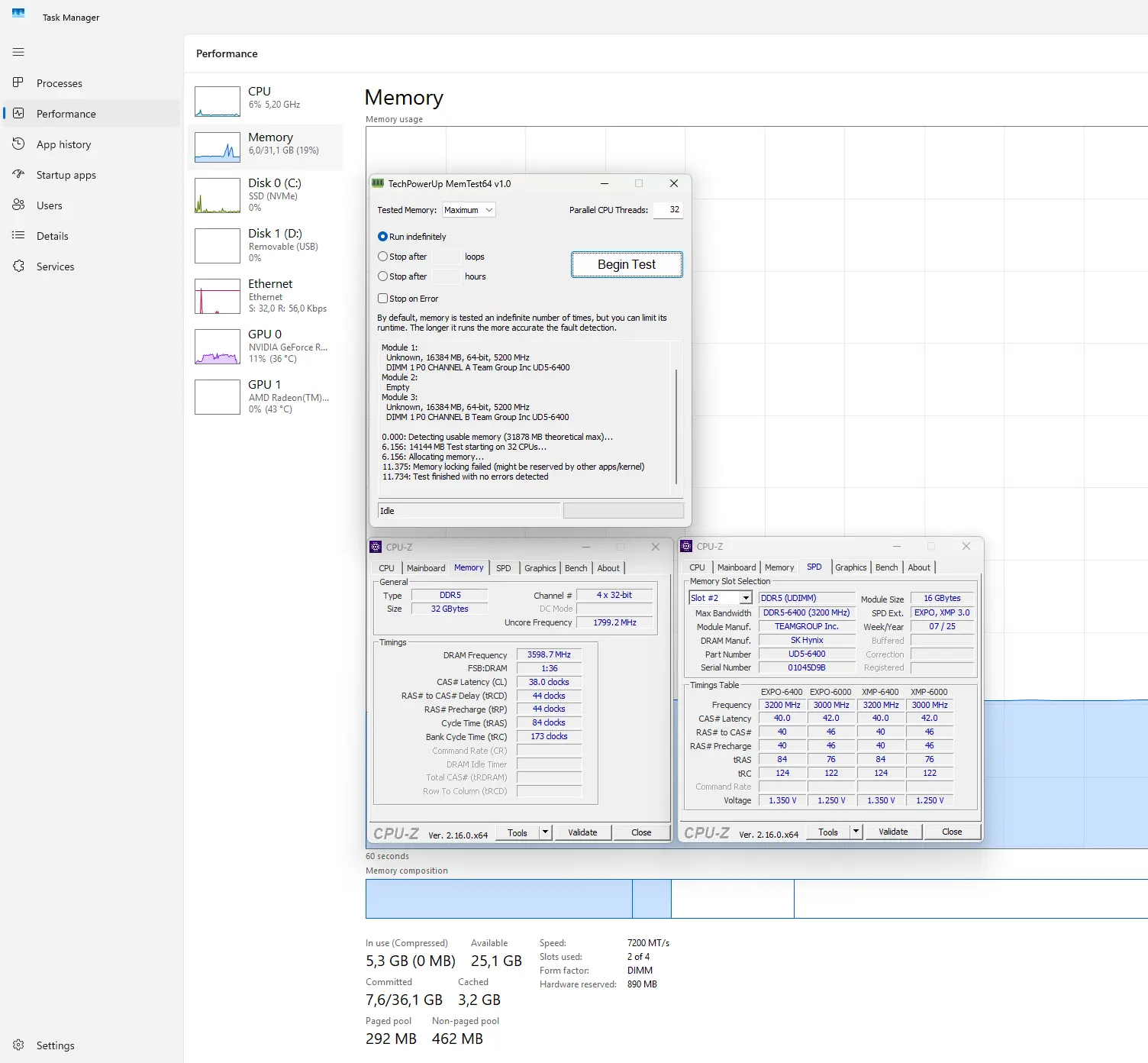 Stabilitas memori menjadi salah satu aspek yang diuji. Dengan profil AMD EXPO, RAM dapat berjalan stabil pada 6400 MT/s sesuai spesifikasi. Bahkan saat dilakukan overclock hingga 7200 MT/s dengan timing CL38, sistem tetap menunjukkan kestabilan, sehingga dapat disimpulkan bahwa motherboard ini memiliki headroom tuning memori yang cukup baik.
