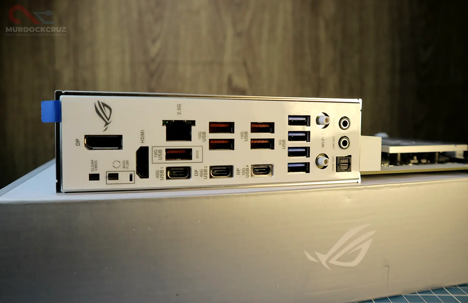 Konektivitas menjadi salah satu keunggulannya, dengan kehadiran WiFi 7, LAN 2.5G, serta port USB yang cukup lengkap termasuk USB4 pada panel belakang. Hal ini menunjukkan bahwa meskipun berada satu tingkat di bawah seri flagship, ASUS tetap menyertakan standar konektivitas terkini.