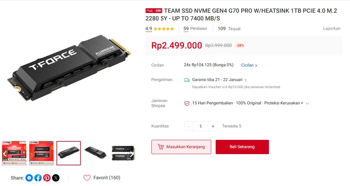 - Dulu: SSD NVMe Gen4 2TB bisa ditebus di kisaran 1,5 hingga 2 jutaan.