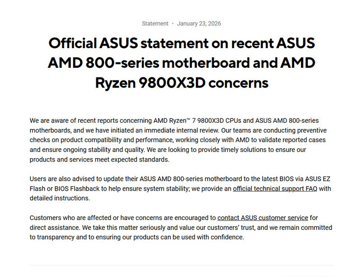 Dalam keterangannya, ASUS menekankan bahwa mereka sedang bekerja sama erat dengan AMD untuk memvalidasi kasus-kasus yang dilaporkan oleh pengguna.