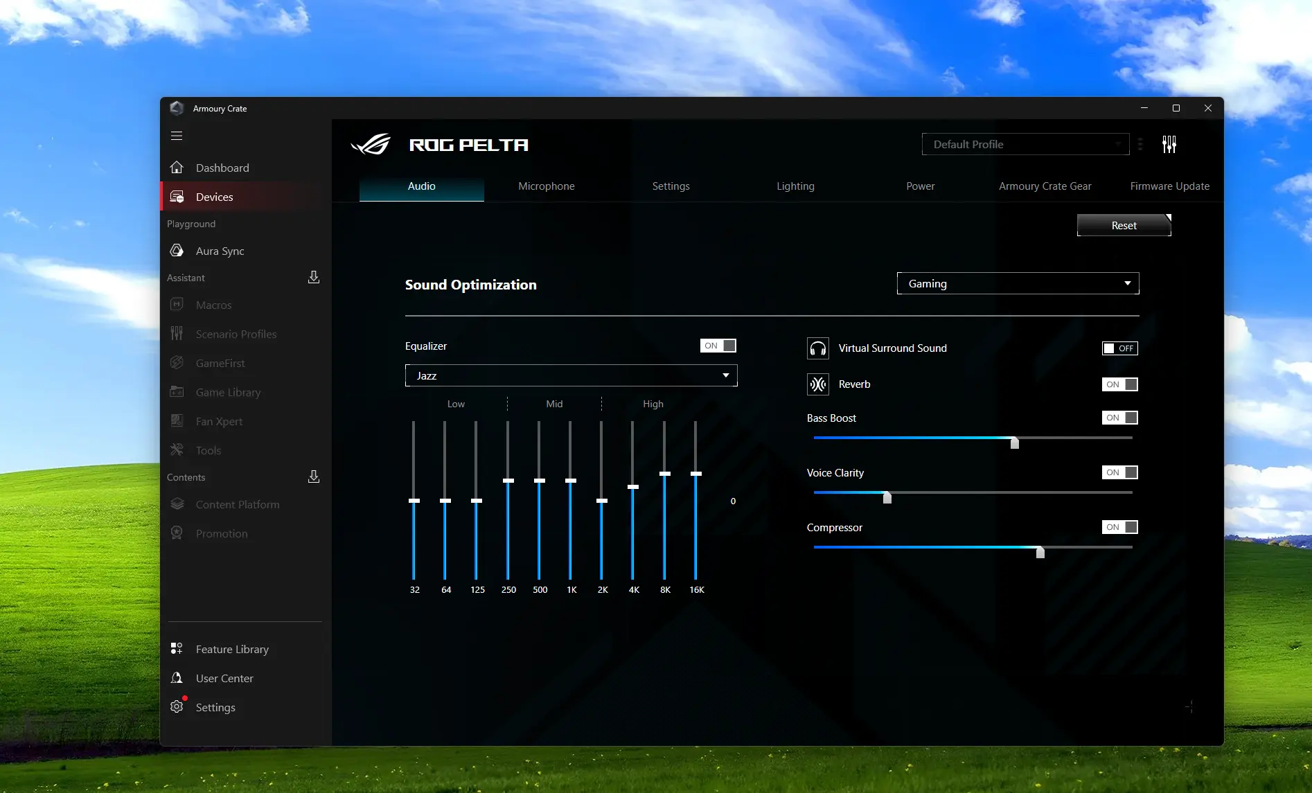 ROG Pelta menggunakan driver 50 mm titanium-plated diaphragm dengan rentang frekuensi 20Hz – 20kHz. Karakter suara yang dihasilkan cenderung cukup balanced untuk sebuah headset gaming.